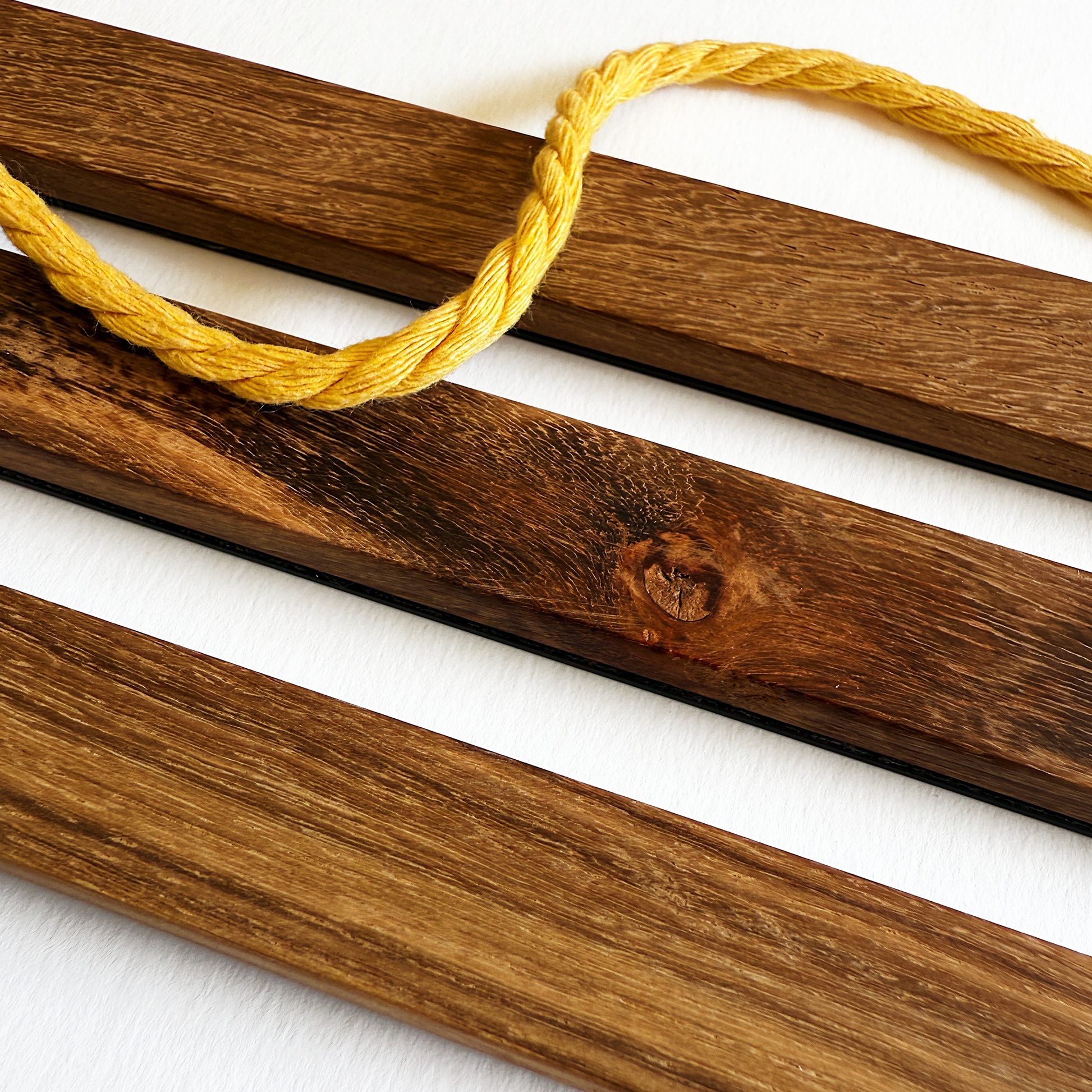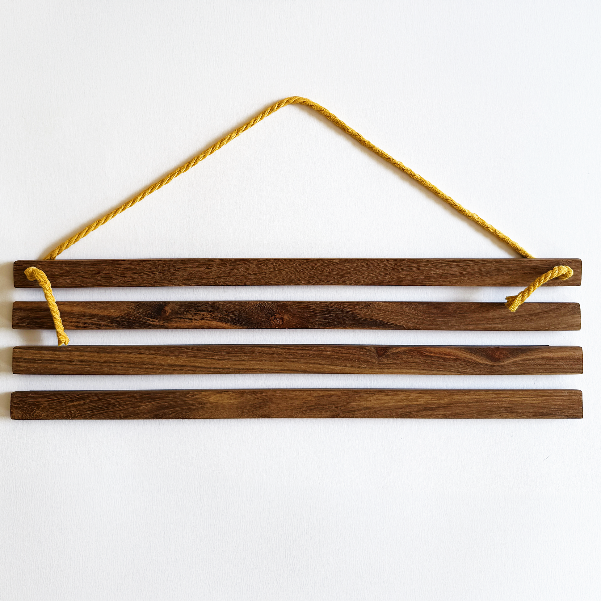 Our kiaat wood hanger frame is a magical addition to the print. We chose natural kiaat wood for the rich colour that complements the canvas and mustard rope. It is a beautiful, fine-art finish for the print.